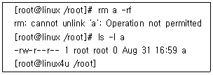 48. Linux에서 root 권한 계정이 'a' 라는 파일을 지우려 했을때 나타난 결과이다. 이 파일을 지울 수 있는 방법은?
