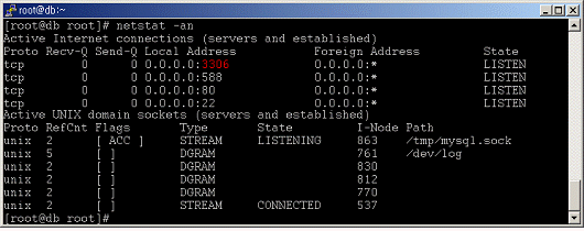 19. Linux에서 'netstat -an' 명령으로 어떤 시스템을 확인한 결과 다음과 같은 결과가 나왔다. 아래 '3306'번 포트는 어떤 데몬이 가동될 때 열리는 포트인가? (단, 시스템의 기본 포트는 Well-Known 포트를 사용한다.)