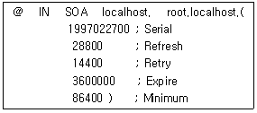 19. DNS(Domain Name System) 서버를 처음 설치하고 가장 먼저 만들어야 하는 데이터베이스 레코드는?