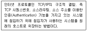 4. 공격 유형 중 마치 다른 송신자로부터 정보가 수신된 것처럼 꾸미는 것으로, 시스템에 불법적으로 접근하여 오류의 정보를 정확한 정보인 것처럼 속이는 행위를 뜻하는 것은?