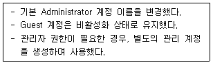 19. 보안 관리자가 Windows Server의 계정 정책을 점검하고 있다. 특정 계정에서 암호 없이 로그인 가능하도록 설정하려면 어떤 항목을 조정해야 하는가?