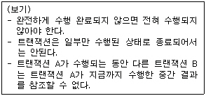 11. 트랜잭션에 대한 설명 중 보기에 해당하는 특성은?