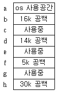 59. 그림과 같이 저장장치가 배치되어 있을 때 13K의 작업이 공간의 할당을 요구하여 최악 적합(Worst-Fit) 전략을 사용한다면 어느 주소에 배치되는가?
