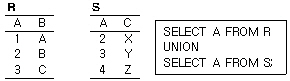 14. 다음 두 테이블 R과 S에 대한 아래 SQL 문의 실행결과로 옳은 것은?