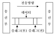 90. HDLC 전송제어 절차에서 채용하고 있는 방식이며, 데이터를 송신할 때 데이터블록 구간을 플래그 순서로 식별하고 그림과 같은 형태로 플래그가 구성되는 동기 방식은?