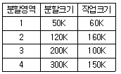 45. 다음 표와 같이 작업이 할당되었을 경우 내부 단편화 및 외부 단편화 크기는 얼마인가?