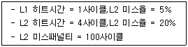 39. 다음과 같은 값을 가지는 시스템에서 2계층 캐시 메모리를 사용할 경우는 그렇지 않은 경우에 비해 평균 메모리 엑세스 시간이 약 몇 배 향상되는가?