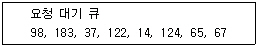 47. 현재 헤드 위치가 53에 있고 트랙 0번 방향으로 이동 중이다. 요청 대기 큐에는 다음과 같은 순서의 액세스 요청이 대기 중일 때 SSTF 스케줄링 알고리즘을 사용한다면 헤드의 총 이동거리는 얼마인가?