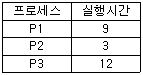 50. 다음과 같은 3개의 작업에 대하여 FCFS 알고리즘을 사용 할 때, 임의의 작업 순서로 얻을 수 있는 최대 평균 반환 시간을 T, 최소 평균 반환 시간을 t 라고 가정했을 경우 T-t의 값은?