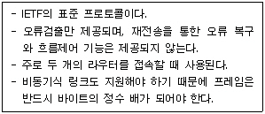 96. 다음이 설명하고 있는 데이터 링크 제어 프로토콜은?