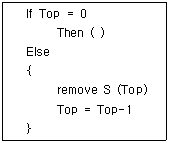 15. 스택의 자료 삭제 알고리즘이다. ( ) 안 내용으로 가장 적합한 것은? (단, Top : 스택포인터 , S : 스택의 이름)