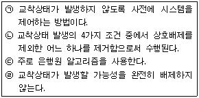 52. 교착상태 (Deadlock)의 해결 방법 중 회피 (Avoidance) 기법에 관한 옳은 내용 모두를 나열한 것은?