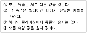9. 릴레이션의 특징으로 옳은 내용 모두를 나열한 것은?