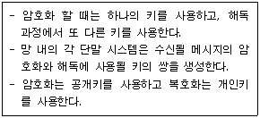 99. 데이터를 전송할 때에는 항상 정보에 대한 보안문제가 대두되며, 이를 해결하기 위해 다양한 암호화 방식이 사용된다. 다음이 설명하고 있는 암호화 방식을 사용하는 것은?