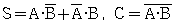 25. 반가산기 회로의 carry(C)와 sum(S)을 나타내는 논리식은?