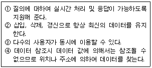 3. 데이터베이스의 특성으로 옳은 내용 모두를 선택한 것은?