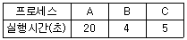44. 준비상태 큐에 프로세서 A, B, C 가 차례로 도착하였다. 라운드로빈(Round Robin)으로 스케줄링할 때 타임 슬라이스를 4초로 한다면 평균 반환 시간은?