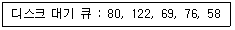 47. SSTF 방식을 사용할 경우 현재 헤드의 위치는 60 이며, 트랙 바깥 쪽 방향으로 진행 중이다. 디스크 대기 큐에 다음과 같은 순서(왼쪽부터 먼저 도착한 순서임)의 액세스 요청이 대기 중일 때 가장 먼저 실행되는 것은? (단, 가장 안쪽 방향의 트랙 번호는 0 이다.)