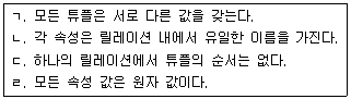 13. 릴레이션의 특징으로 옳은 내용 모두를 나열한 것은?