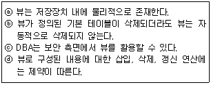 1. 뷰(View)에 대한 설명 중 옳은 내용으로만 나열한 것은?(일부 핸드폰에서 보기 내용이 보이지 않아서 괄호뒤에 다시 표기하여 둡니다.)
