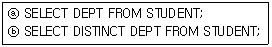 12. STUDENT 테이블에 독일어과 학생 50명, 중국어과 학생 30명, 영어영문학과 학생 50명의 정보가 저장되어 있을 때, 다음 SQL 문의 실행 결과 튜플 수는? (단, DEPT 컬럼은 학과명)