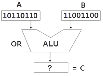 35. 다음 그림과 같이 A, B 2개의 레지스터에 있는 자료에 대하여 ALU가 OR 연산을 행할 때 출력 레지스터 C의 내용은?