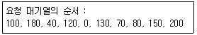 50. 현재 헤드의 위치가 50에 있고, 요청 대기열의 순서가 다음과 같을 경우, C-SCAN 스케줄링 알고리즘에 의한 헤드의 총 이동 거리는 얼마인가? (단, 현재 헤드의 이동 방향은 안쪽이며, 안쪽의 위치는 0으로 가정한다.)