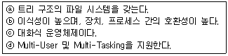 51. UNIX의 특징으로 옳은 내용 모두를 나열한 것은?