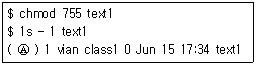58. 다음은 UNIX 명령어 중 permission 변경을 위한 “chmod”의 실행 예이다. “chmod” 명령어를 실행한 후 “ls -l” 명령을 사용하여 결과를 확인하고자 할 때 (Ⓐ) 부분에 출력될 결과로 가장 옳은 것은?