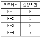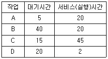47. SJF(Shortest Job First) 스케줄링에서 다음과 같은 작업들이 준비상태 큐에 있을 때 평균 반환시간과 평균 대기시간은?