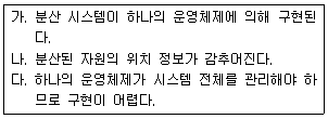 56. 분산 처리 시스템에 대한 설명으로 옳지 않은 것은?