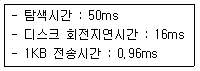 59. 전송크기가 1KB(kilo byte)일 때, 이동헤드디스크의 데이터 액세스 시간과 고정헤드의 데이터 액세스 시간(ms)을 구한 결과는?