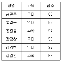 12. 다음의 성적 테이블에서 학생별 점수평균을 구하기 위한 SQL문으로 옳은 것은?