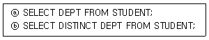 16. STUDENT 테이블에 독일어과 학생 50명, 중국어과 30명, 영어영문학과 학생 50명의 정보가 저장되어 있을 때, 다음 두 SQL문의 실행 결과 튜플 수는? (단, DEPT 칼럼은 학과명)