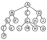 23. 다음과 같은 이진트리(Binary tree)의 운행법(traversal)중 POSTORDER에 의한 결과는?