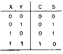 53. Half - Adder는 2bit(x,y)를 산술적으로 가산하는 조합회로이며, 이에 해당하는 진리표는 이래와 같다. 캐리(c)와 합(s)를 논리적으로 구한 것은?