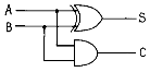 45. 반가산기 회로의 carry와 sum을 나타내는 논리식은?