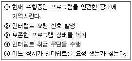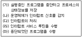 47. 다음은 인터럽트 체제의 동작을 나열 하였다.수행 순서를 올바르게 표현한 것은?