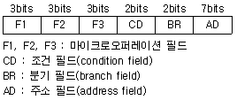 60. 수직 마이크로명령어 방식의 명령어가 다음의 형식을 갖는다면 이 제어장치는 최대 몇 개의 제어 신호를 동시에 생성할 수 있는가?