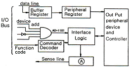 85. 그림은 입출력 제어장치와 입출력 버스의 연결을 나타낸 것이다. 빈 블록 ?에 알맞은 내용은?
