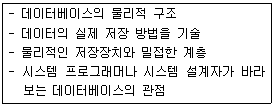 34. 데이터베이스의 3계층 스키마 중 다음은 무엇에 대한 설명인가?