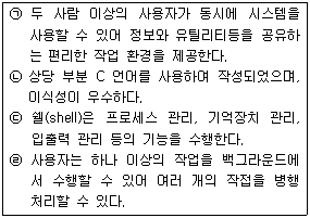 77. UNIX에 대한 옳은 설명 모두를 나열한 것은