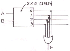 53. 다음 [그림]에서 F를 A, B의 부울식으로 나타내면? (단, 그림에서는 x는 선의 절단을 표시함)