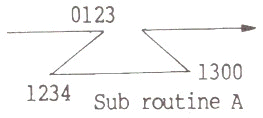 82. 어느 프로그램 중 0123 번지에 CALL A 명령이 있다. 이 CALL A를 수행한 후 PC에 기억된 값은? (단, 명령어의 길이는 8비트이다.)