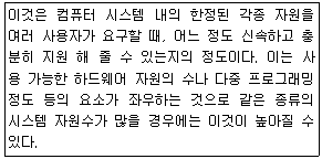 68. 운영체제의 성능평가 요인 중 다음 설명에 해당 하는 것은?