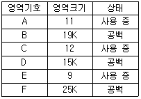 77. 주기억장치 배치 전략 기법으로 최적 적합 방법을 사용할 경우, 다음과 같은 기억장소 리스트에서 10K크기의 작업은 어느 기억공간에 할당되는가? (단, 탐색은 위에서 아래로 한다.)