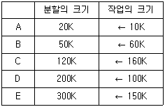 63. 다음 표는 고정 분할에서의 기억장치 단편화(Fragmentation) 현상을 보이고 있다. 외부단편화(External Fragmentation)의 크기는 총 얼마인가? (단, 페이지 크기의 단위는 K를 사용한다.)