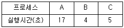 80. 준비 상태 큐에 프로세스 A, B, C가 차례로 도착하였다. 라운드 로빈(Round Robin)으로 스케줄링할 때 타임 슬라이스를 4초로 한다면 평균 반환 시간은?