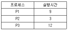 61. 다음과 같은 3개의 작업에 대하여 FCFS 알고 리즘을 사용할 때, 임의의 작업 순서로 얻을 수 있는 최대 평균 반환 시간을 T, 최소 평균 반환 시간을 t라고 가정했을 경우 T-t의 값은?