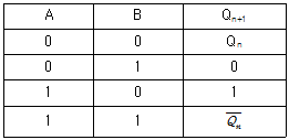 41. 다음 진리표는 어떤 플립플롭인가? (단, A, B는 플립플롭의 입력, Qn은 현재상태, Qn+1은 다음 상태의 출력이다.)